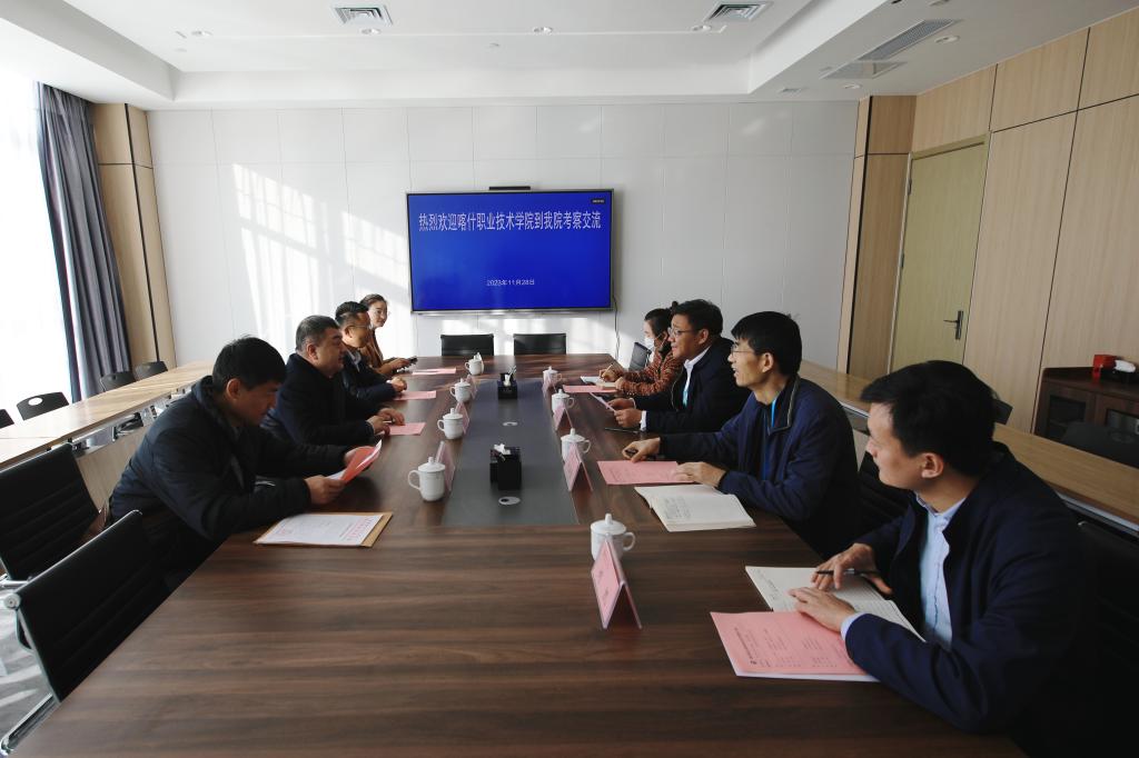 11月28日上午,喀什职业技术学院党委副书记、院长乃比江·亚生一行4人到beat365考察交流。学院党委副书记韩瑞东会见客人,组织人事处、教务处和资产管理处负责同志参加座谈交流。