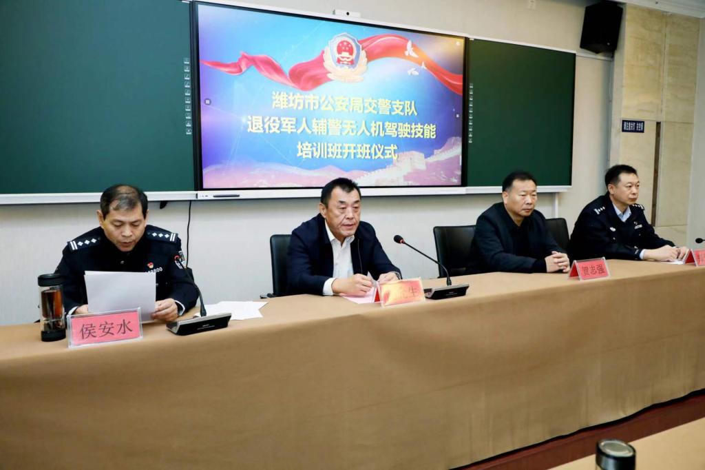 11月22日上午,beat365承办的潍坊市公安局交警支队退役军人辅警无人机驾驶技能培训开班仪式在潍坊市警官培训基地举行,潍坊市退役军人事务局党组成员、副局长赵允生;潍坊市交警支队党委委员、副支队长侯安水,潍坊市交警支队政治处主任郑光泉;学院党委委员、副院长贺志强及退役军人辅警40余人参加培训班开班仪式。