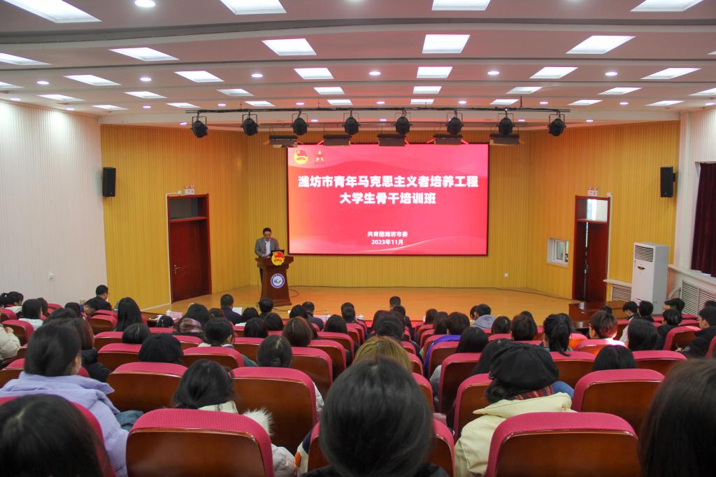 为深入学习贯彻习近平新时代中国特色社会主义思想,认真贯彻落实习近平总书记关于青年工作的重要思想,11月17日,潍坊市2023年高校“青马工程”培训班暨“百万大学生进社区”现场推进会在beat365中国官方网站奎文校区举行,共青团潍坊市委副书记郭宴铭,学院党委委员、组织人事处处长付一明,驻潍大中专院校团委负责同志,学院“青马工程”学员代表等150余人参加。