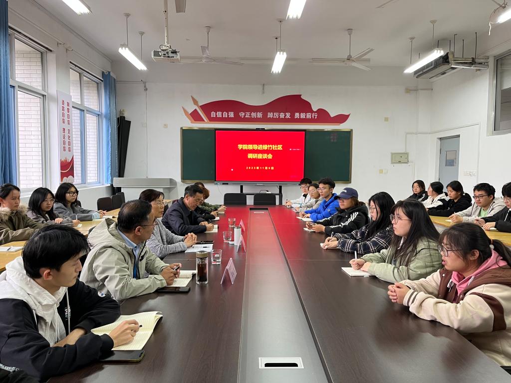 11月9日下午,学院副院长陈美霞到绿竹社区开展活动,与学生代表深入交流座谈。团委学生工作处、食品药品学院主要负责同志参加活动。