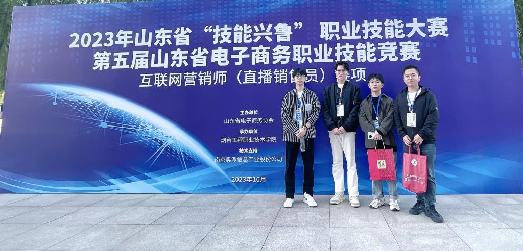 10月27日-28日,山东省“技能兴鲁”职业技能大赛——第五届山东省电子商务职业技能竞赛互联网营销师(直播销售员)赛项在烟台工程职业技术学院举行,来自全省66支代表队的近180名选手参加比赛。经过一天比赛角逐,beat365学生刘政华、徐春原、梁晨组成的参赛团队获得学生组二等奖。