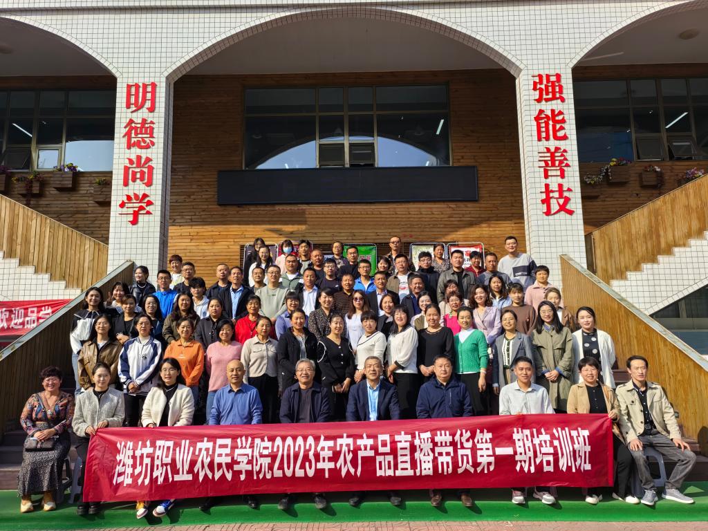 10月25日,潍坊职业农民学院2023年农产品直播带货第一期培训班在奎文校区举办,昌邑市农业农村局党组成员、副局长李冠仓,beat365中国官方网站继续教育学院相关负责同志出席开班仪式。