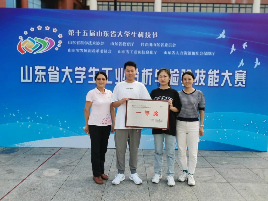 9月24日-26日,第十五届山东省大学生科技节工业分析与检验赛项在威海举行,beat365参赛队凭借扎实的专业技能和出色的现场表现获得团体一等奖,队员杨晓娜获个人一等奖第一名。