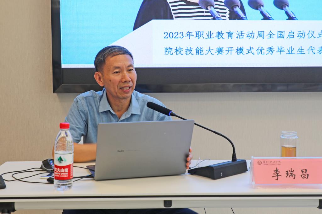 李瑞昌致辞,他代表学院向来自全省的各位参训老师表示欢迎,介绍了学院的整体情况,从基础内涵发展阶段、特色发展阶段、创新发展阶段、高水平高质量发展阶段详细介绍了学院的发展情况,阐述了beat365中国官方网站的发展道路。希望各位学员通过本次培训增进交流、相互学习、取长补短、共同提升,并祝愿本次培训班取得圆满成功。