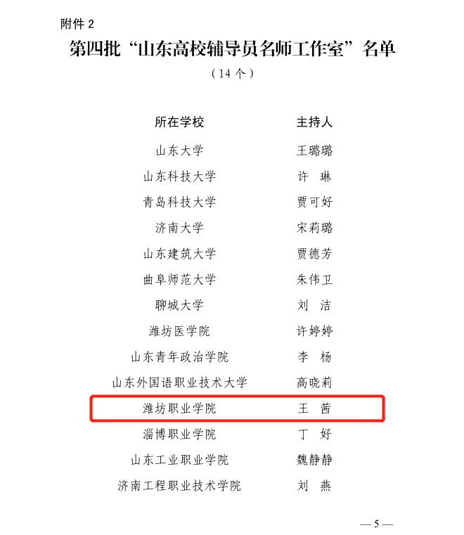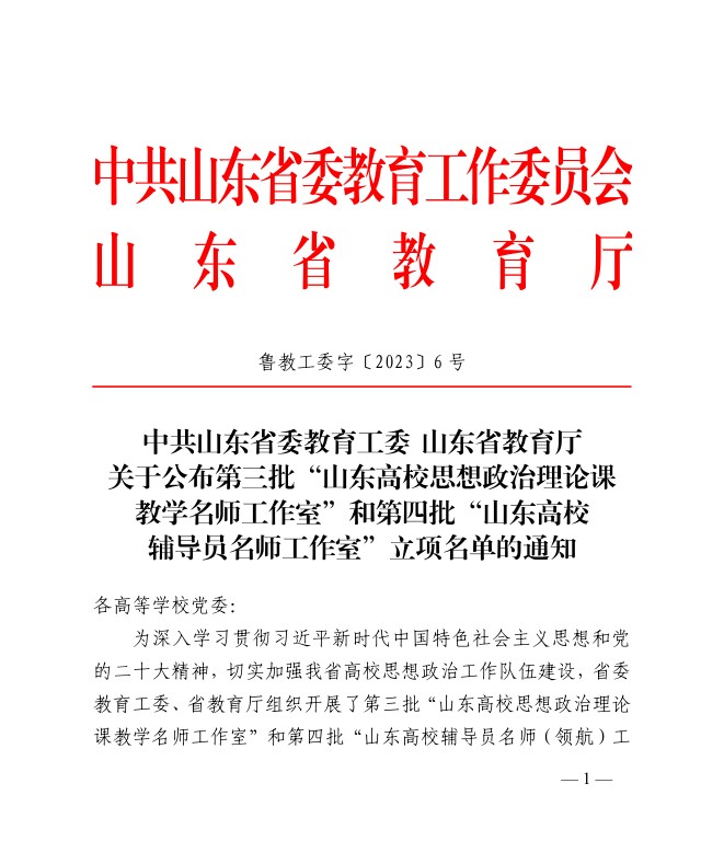 日前,中共山东省委教育工委、山东省教育厅公布了第四批“山东高校辅导员名师工作室”名单,文化创意学院团总支负责同志王茜主持的匠心“职”引工作室成功立项。