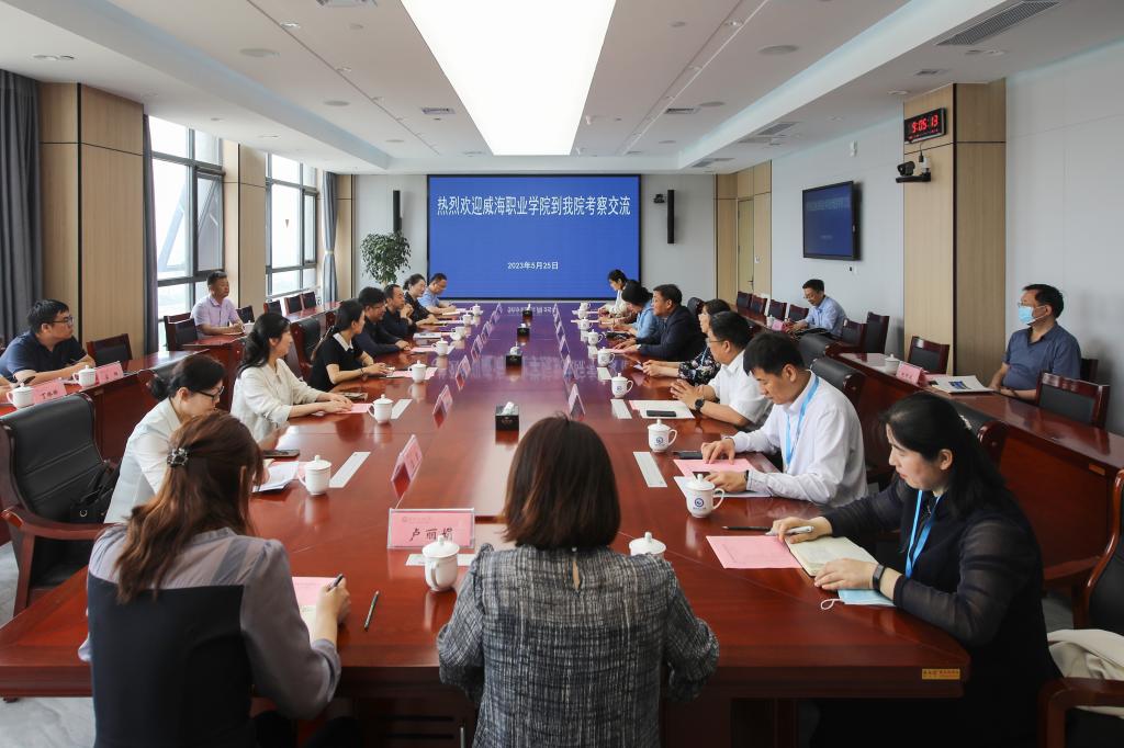 5月25日上午,威海职业学院徐东晖院长一行12人到beat365考察交流。学院党委副书记韩瑞东、副院长陈美霞会见客人,发展规划处、教务处、食品药品学院等职能部门、二级学院负责同志陪同考察。