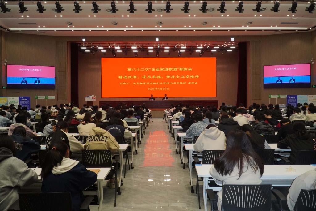 4月20下午,学院第八十二次企业家进校园活动报告会在滨海校区行政楼1楼西侧报告厅举行。青岛新希望琴牌乳业有限公司总经理安保森作了题为“精进执着,追求卓越,塑造企业家精神”的报告。科技处(产学研合作中心)相关人员、食品药品学院、机电工程学院、经营管理学院师生代表400余人参加了报告会。