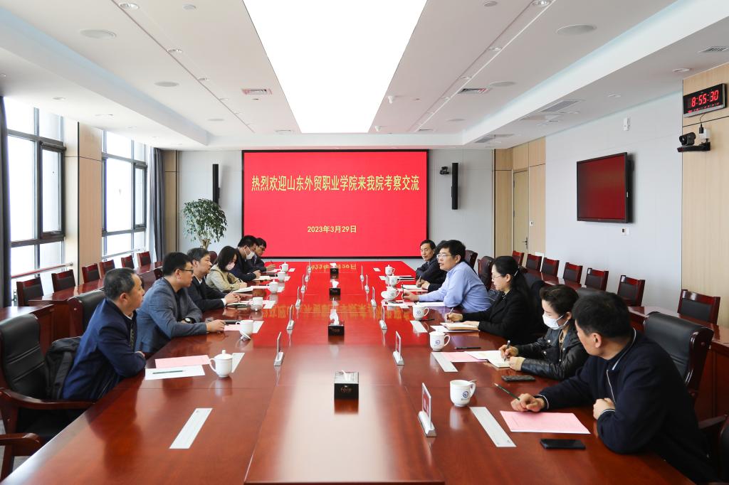 3月29日上午,山东外贸职业学院副书记黄维等一行6人到beat365考察交流。学院党委委员、副院长刘德强,党委委员、宣传部部长刘泓蔚会见客人,组织人事处、团委学生工作处、马克思主义学院等部门负责人参加交流座谈。