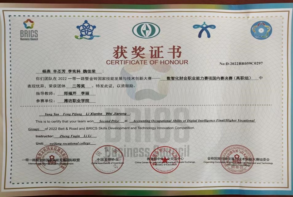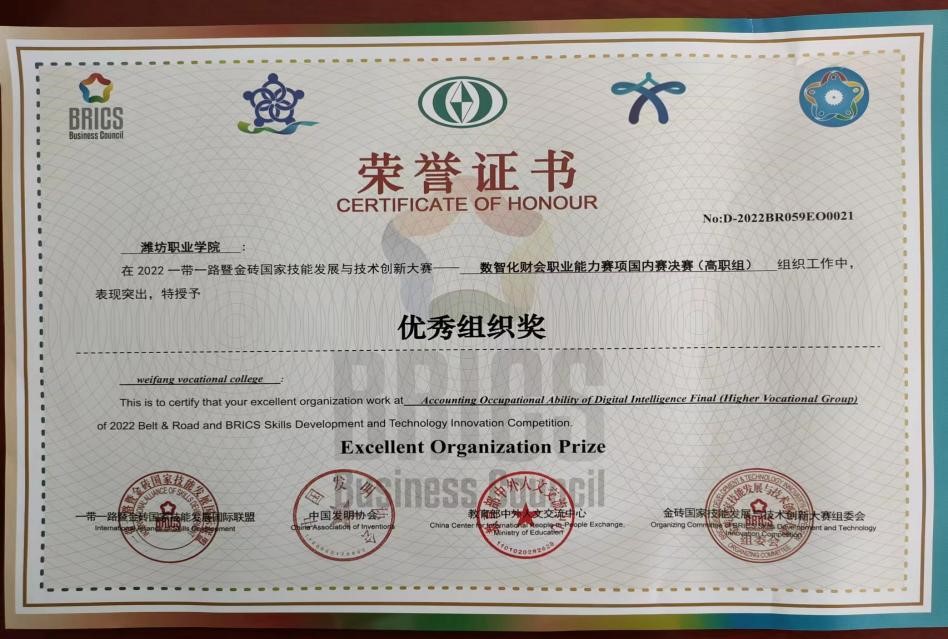 近日,2022年一带一路暨金砖国家技能发展与技术创新大赛“数智化财会职业能力”比赛奖项结果揭晓,beat365获得优秀组织奖。