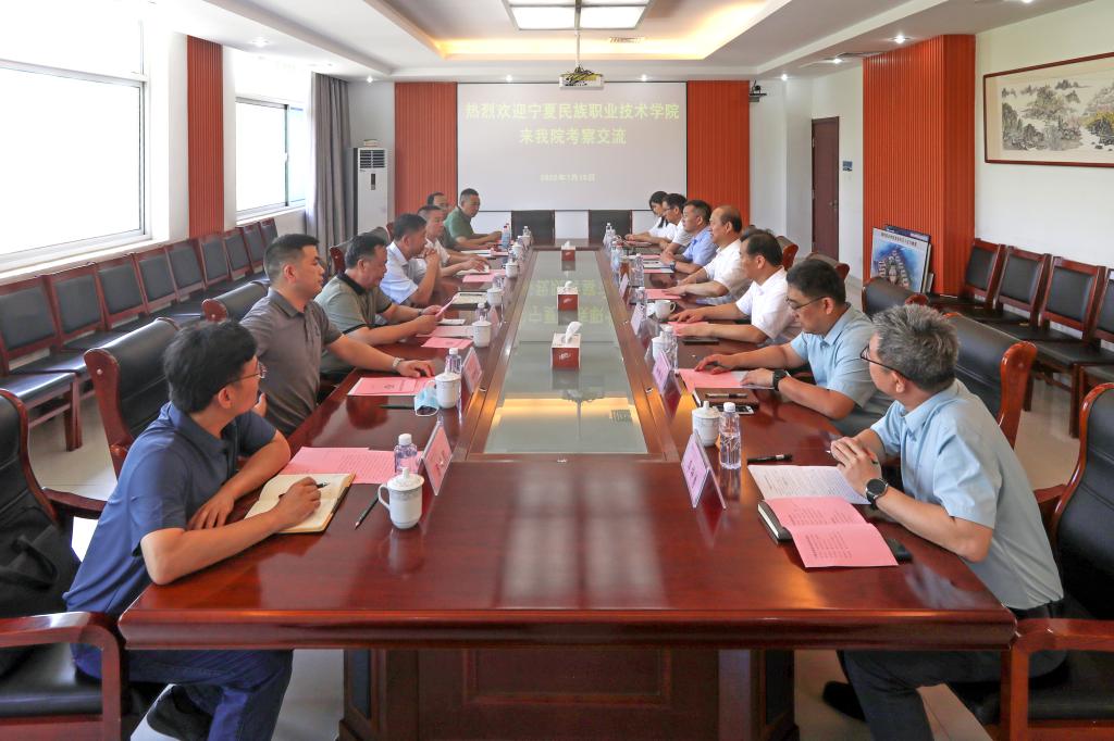 7月15日,宁夏民族职业技术学院党委副书记、院长焦玉柱一行来beat365考察交流。学院党委书记马跃启,党委委员、副院长贺志强会见客人,办公室、教务处、信息工程学院、继续教育学院相关负责人陪同考察交流。