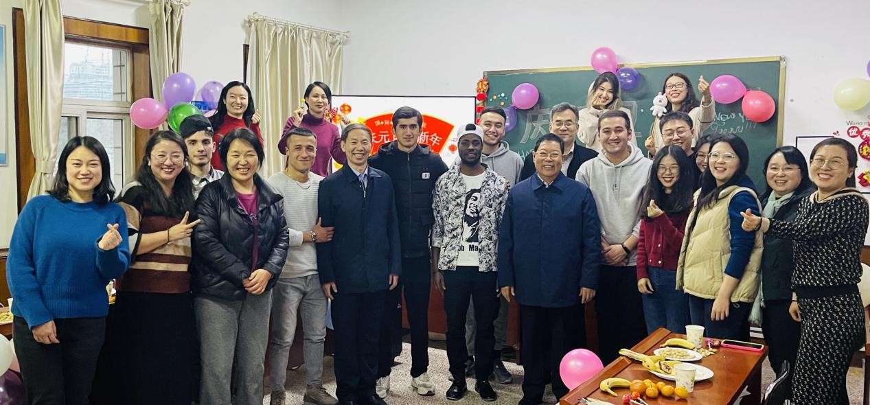 12月31日下午,国际教育学院在奎文校区举办留学生“庆元旦·迎新年”活动,学院党委副书记、副院长桑福岭,副院长李瑞昌参加活动,对留学生表示亲切的慰问,并送上新年祝福,来自乌兹别克斯坦、塔吉克斯坦、俄罗斯、乌干达的留学生以及国际教育学院全体教师欢聚一堂,共庆元旦。