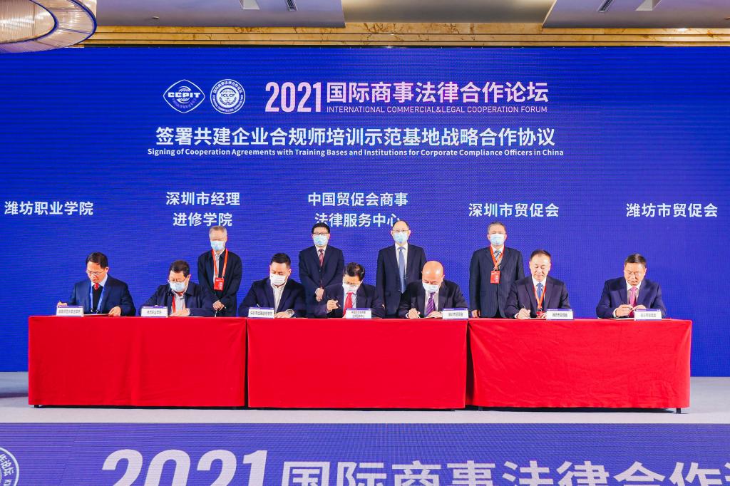 12月15日,由中国国际贸易促进委员会主办,中国国际贸易促进委员会法律事务部和商事法律服务中心、长沙市人民政府承办的“2021国际商事法律合作论坛”在长沙开幕。学院党委副书记、副院长桑福岭应邀参加“企业合规管理与合规专业人才培养”圆桌会议论坛并发表演讲,beat365与中国贸促会商事法律中心、潍坊市贸促会共同签署了共建企业合规师产业学院和企业合规师示范培训基地战略协议,全国第一家企业合规师产业学院、第一批合规师示范培训基地落地beat365。