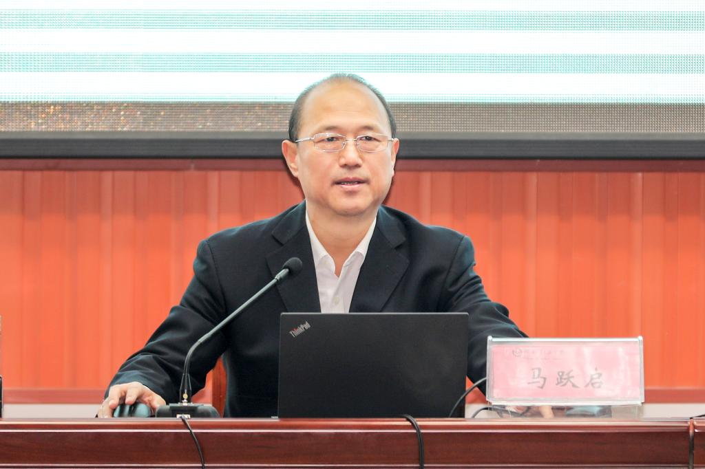 马跃启以《学习贯彻十九届六中全会精神,努力推进学院高质量发展》为题,从深入领会党的十九届六中全会精神、全面了解三个“历史决议”、从党的百年奋斗历程中汲取智慧和力量、努力实现学院高质量发展四个方面对《决议》进行了深刻解读。他结合丰富的史料和大家共同回顾了党的百年历程中前两个历史决议产生的历史背景、形成过程、主要内容和重要意义,详细解读了党制定第三个历史决议的战略考量和重要原则,全面梳理了中国共产党百年奋斗史上前三个历史时期的经验和教训、第四个历史时期的历史性成就和历史性贡献,重点阐释了中国共产党百年奋斗的历史意义和历史经验。