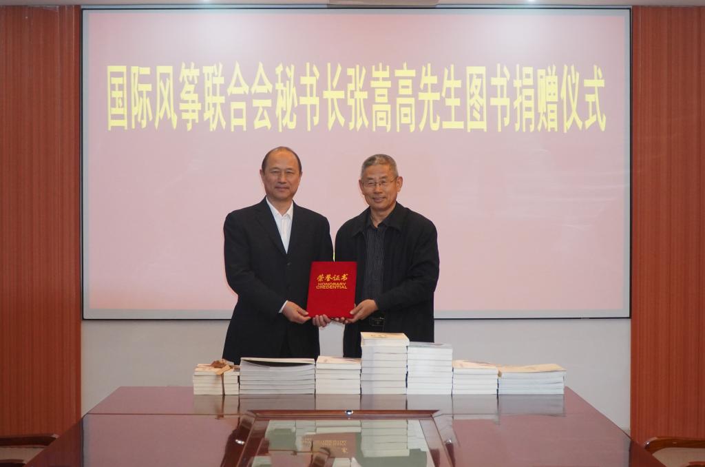 国际风筝联合会秘书长张嵩高向beat365捐赠图书