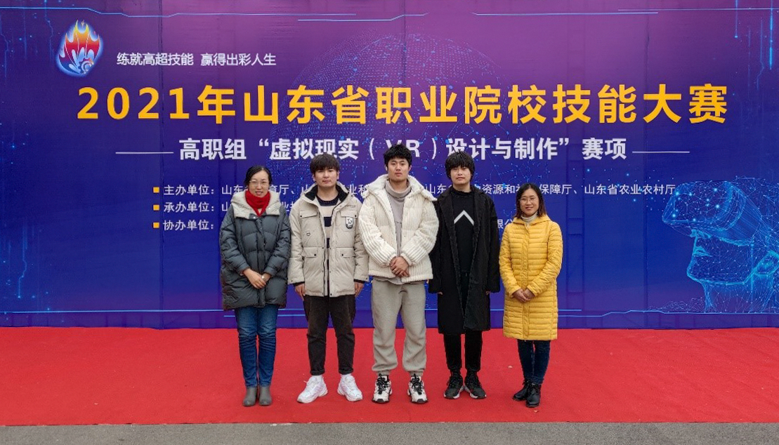 12月7至8日,2021年山东省职业院校技能大赛(高职组)“虚拟现实(VR)设计与制作”赛项在山东信息职业技术学院举行。全省37所高职院校111名选手参加了比赛,经过两天的激烈角逐,信息工程学院贺春旭、范博文、李吉瑞三名同学组成的参赛队,在朱丽兰、刘萍两位老师的指导下团结协作、沉着应战,最终总成绩位列第二名,荣获一等奖。