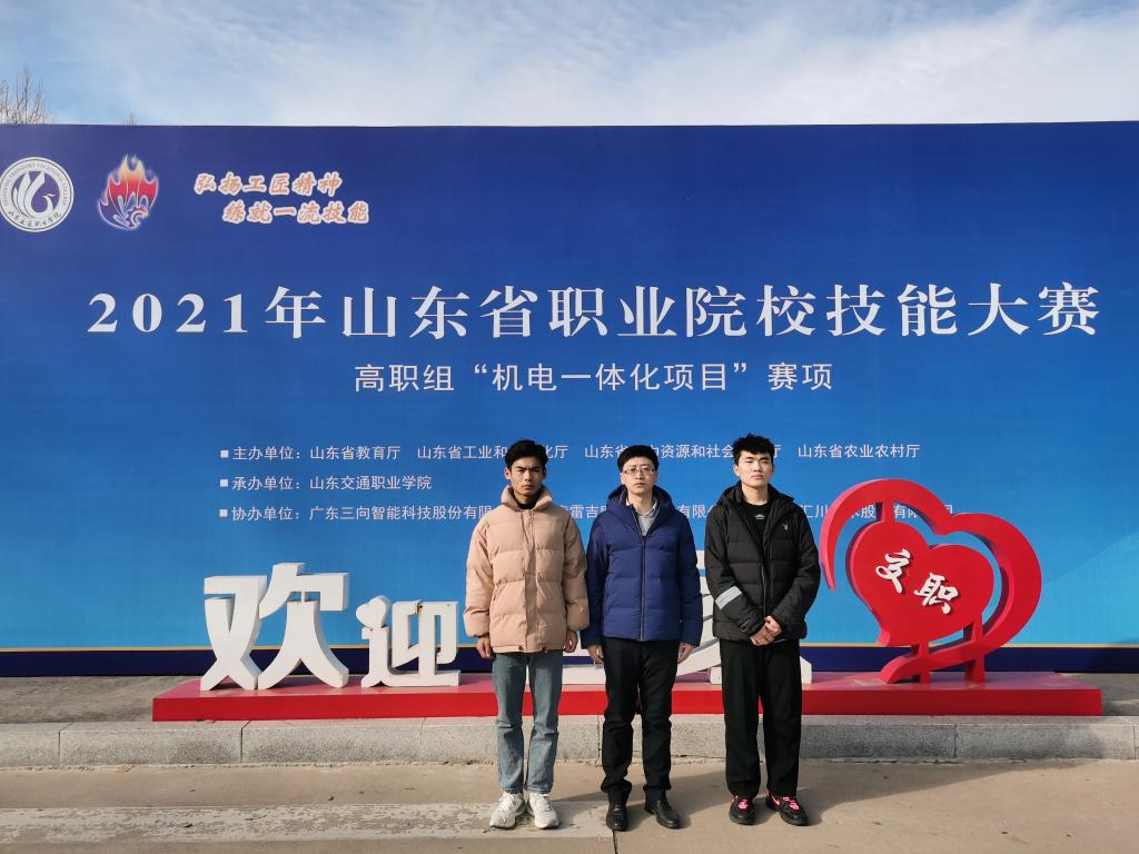 12月5日至8日,2021年山东省职业院校技能大赛“机电一体化项目”赛项在山东交通职业学院举行。共有来自全省29支代表队同场竞技,beat365机电工程学院学生潘从仁、陈冠华,指导教师王晓军、解永辉、石海龙,组成的代表队在比赛中沉着应战,通力合作,最终获得该赛项总成绩第5名、山东省二等奖。