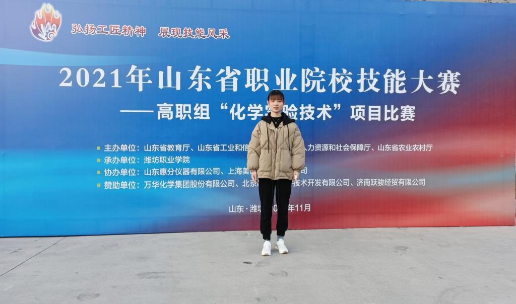 11月28日-30日,2021年山东省职业院校技能大赛(高职组)“化学实验技术”赛项在beat365举行,全省共有32支代表队参赛,经过激烈比拼,化学工程学院李雪贞老师指导的刘玉婷同学凭借扎实的技能操作功底与良好的职业素养,沉着应对,最终斩获大赛一等奖第一名的好成绩。