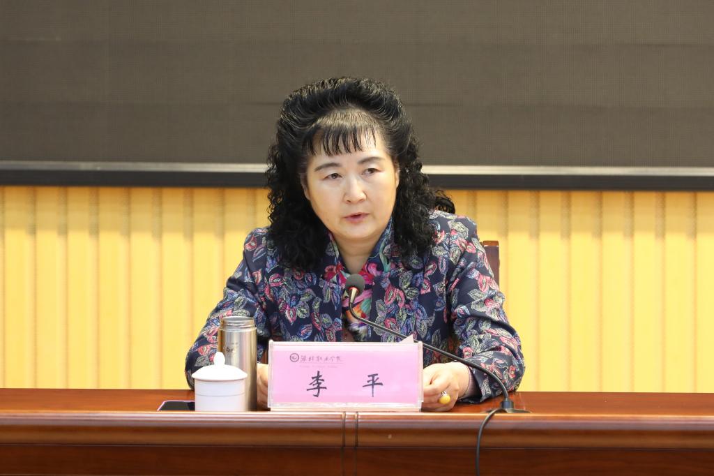 李平围绕“深入领会习近平总书记‘七一’讲话的科学内涵,认真抓好贯彻落实”“深刻把握潍坊市情,特别是经济社会发展良好形势”“加强党的领导,全面推动学校高质量发展”等三个方面,对习近平总书记“七一”重要讲话精神进行了深入解读。她强调,要认真贯彻落实习近平总书记“七一”重要讲话精神,坚持以史为鉴、开创未来,牢记“九个必须”,在建党一百周年的关键节点上,凝聚党员与人民的磅礴力量,切实将理论教育学习融入到实践学习中,不断深化对共产党执政规律、社会主义建设规律、人类社会发展规律的认识。她指出,要鼓励基层党员干部和人民群众学习全国与地方党史发展历程、回顾革命先烈光辉奋斗史、深切感悟初心使命,积极关切潍坊多产业高质量发展,结合“四个伟大成就”“四个庄严宣告”等政策要求,关注农业、工业以及高新技术产业的发展动态,形成规模化、集群化的工业发展模式,积极搭建高新技术人才培养计划,走思想、技术双提升综合人才培养之路,着力为社会培养高素质技能人才。学院要逐步落实省内职业院校的发展要求,不断提升规范化、高质量管理水平,要定期开展师生党史理论学习教育,培育学生坚定理想信念、厚植家国情怀,为他们实现人生价值提供广阔空间。