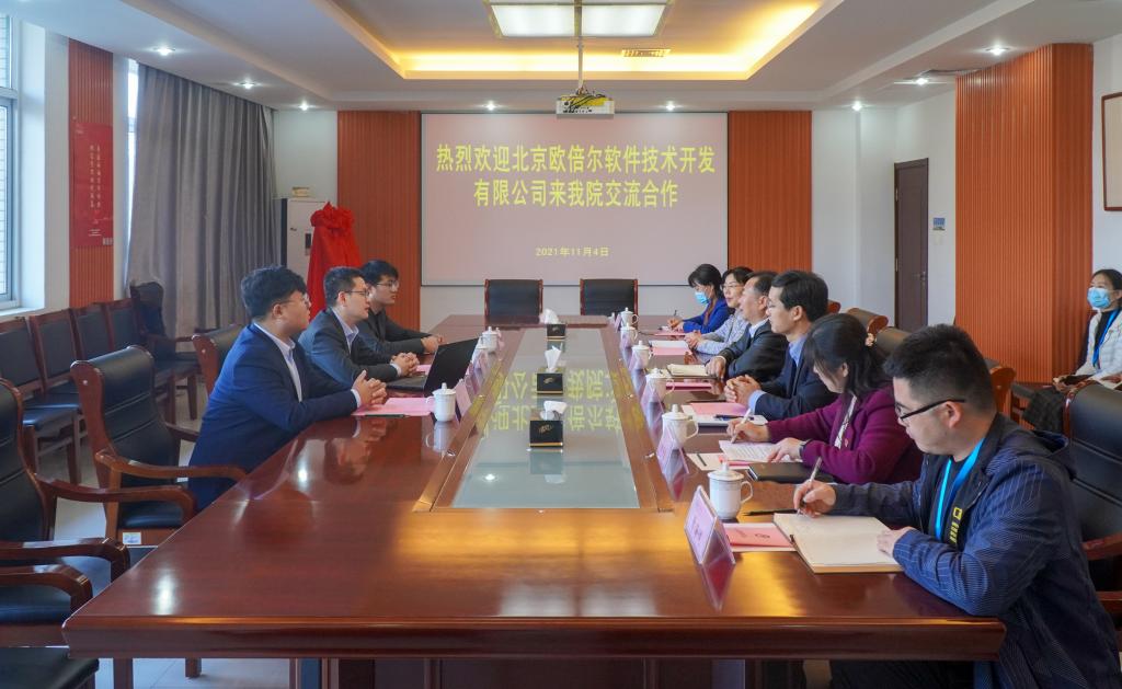 贺志强代表学院对北京欧倍尔公司一行的到来表示欢迎,对公司捐赠软件表示感谢。他简要介绍了近几年学院取得的成绩、获得的荣誉以及新校区建设情况,希望校企双方能够紧密合作,共同致力于信息化教学模式的探索和创新,更好地为我校大赛训练、课程实践提供服务。