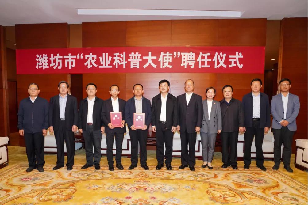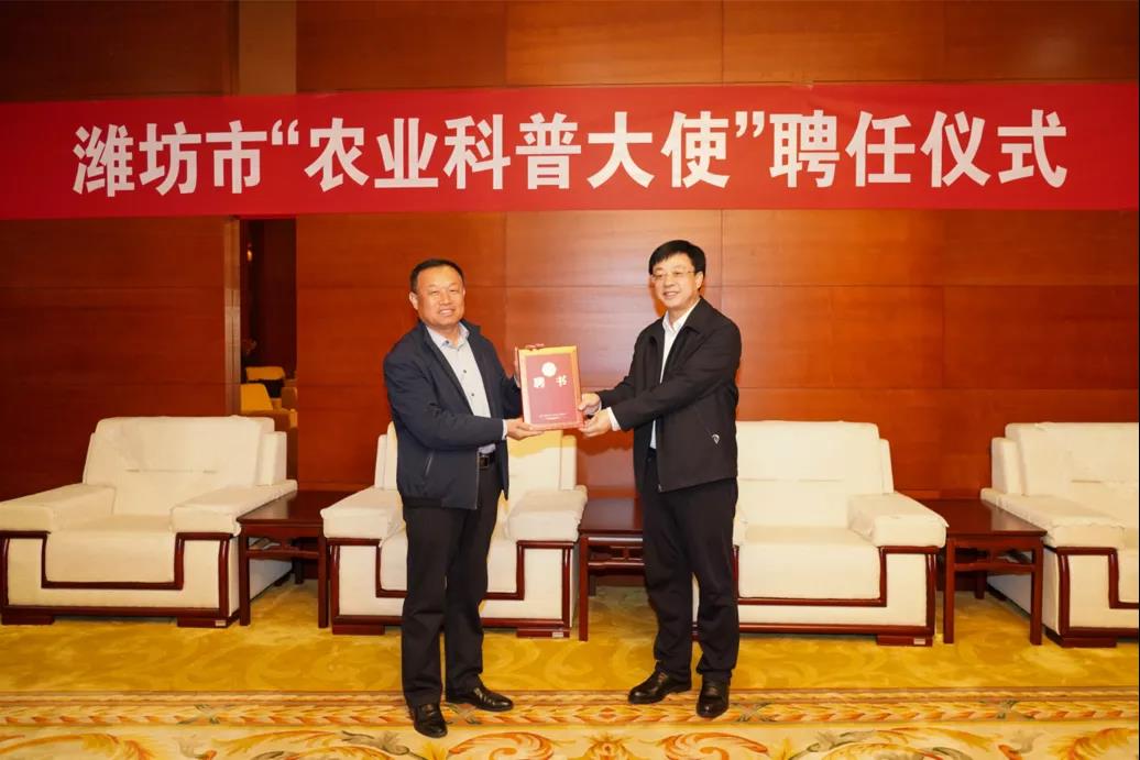 10月15日,潍坊市“苗木科普大使”聘任仪式在潍坊市科技馆举行,beat365丁世民教授获聘。潍坊市委副书记、市长刘运出席仪式,并颁发聘任证书。学院党委书记马跃启,市委副秘书长尚仕国,市科协党组书记、主席孙晓非,市农业农村局三级调研员赵庆胜,市科协党组成员、市科技馆馆长许军以及学院宣传部相关人员参加仪式。