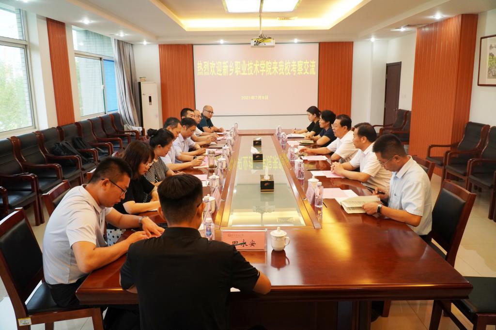 7月9日下午,新乡职业技术学院党委书记张林一行在新迈尔科技有限公司首席运营官张廷文陪同下来我校考察交流。学校党委副书记、副校长桑福岭会见客人,副校长贺志强,教务处、财务处、发展规划处相关负责同志参加座谈交流活动。