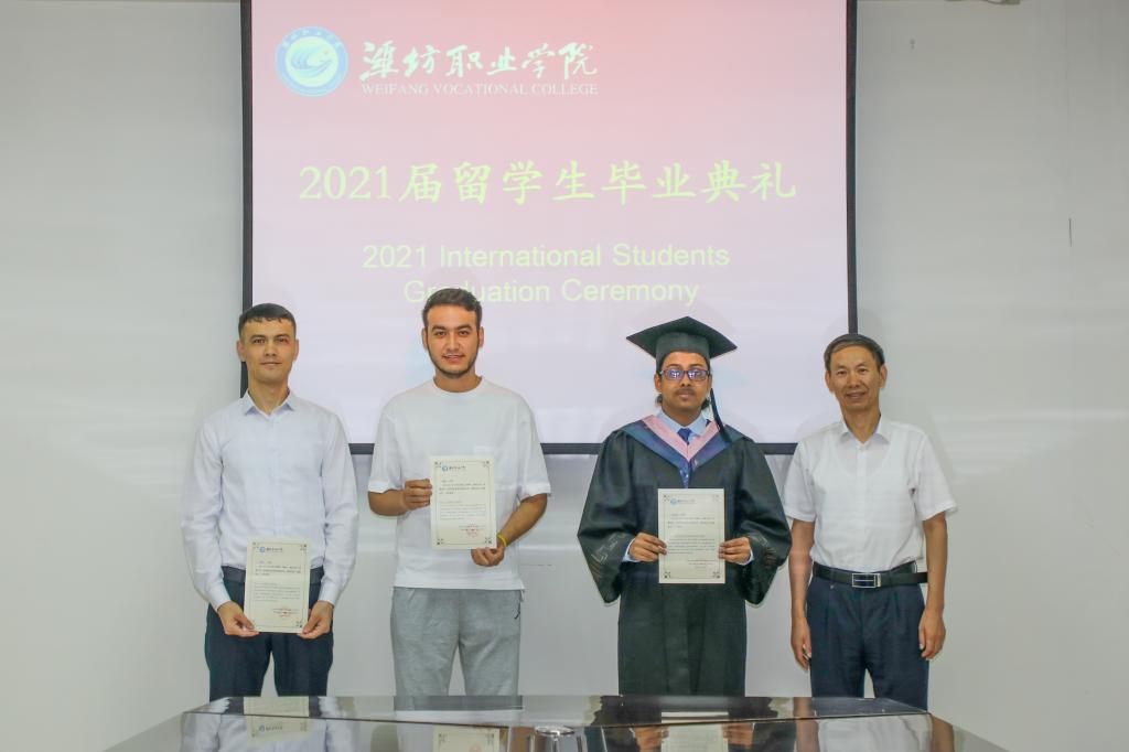 7月8日上午,学校2021届留学生毕业典礼在奎文校区11号楼会议室举行。学校副校长李瑞昌、国际教育学院和国际商务学院相关负责人和任课教师、班主任以及全体在校留学生参加典礼。