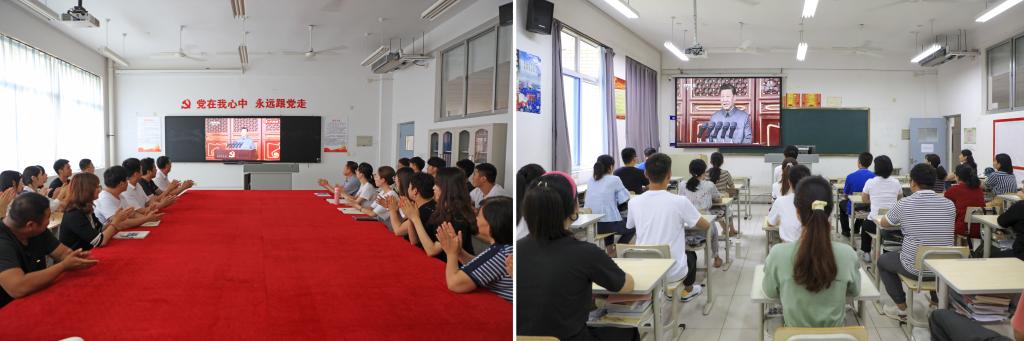 收看结束后,师生们热烈讨论习近平总书记重要讲话,抒发对党的热爱和祝福,表达对党的赤诚和对教育事业的忠诚。接下来,学校党委将以本次盛会召开为契机,全面组织学习贯彻落实总书记的讲话精神,增强“四个意识”、坚定“四个自信”、做到“两个维护”,坚持用习近平新时代中国特色社会主义思想铸魂育人。紧紧围绕立德树人根本任务,深入学习领会贯彻习近平总书记对职业教育的重要批示和全国职业教育大会精神,秉承“明德尚学 强能善技”的校训,弘扬“崇实尚行 敢于争先”的潍职精神,坚定信心,求真务实,奋勇争先,再创佳绩,为职业教育的高质量发展贡献“潍职力量”。(鞠发营供稿)