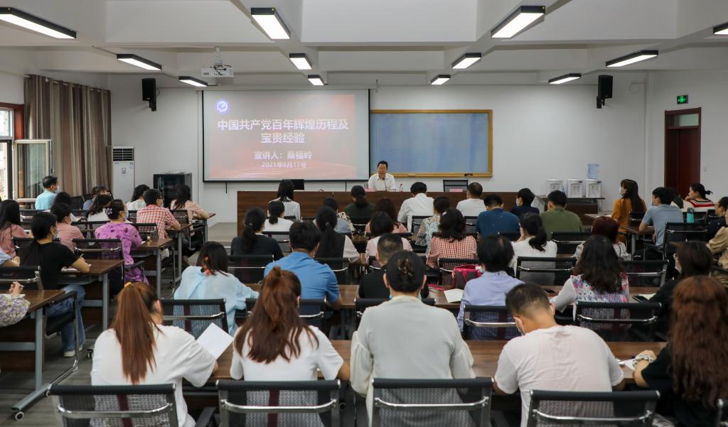 专题党课内容丰富、深刻生动,回顾了中国共产党100年来成长壮大的辉煌历程,阐述了中国共产党“不忘初心、牢记使命”的精神内涵。全体党员一致表示,听了专题党课,从我党百年奋斗的壮丽征程中领略到了磅礴的信仰力量,感受到了革命先辈们的崇高精神。今后,会以更勤勉刻苦的学习态度,更务实的工作作风,落实好立德树人根本任务,主动担当、积极作为,创优争先,以优异成绩向建党100周年献礼。(柳静供稿)