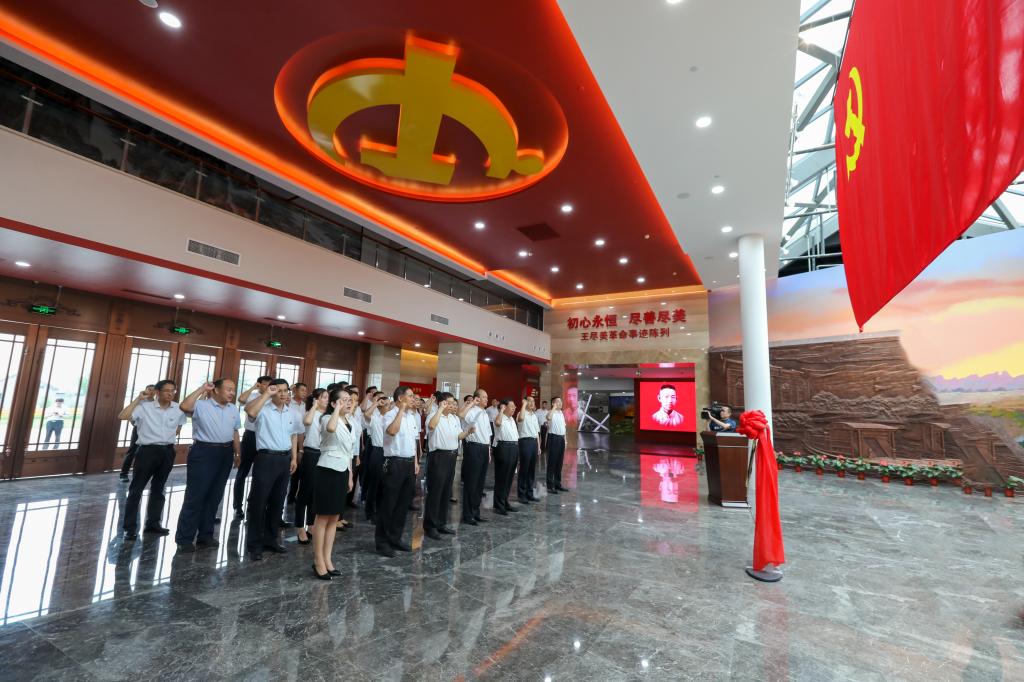 在党性教育主题展馆举行了beat365中国官方网站党性教育基地揭牌仪式并重温入党誓词。诸城市委副书记、市长王浩,学校党委书记马跃启共同为基地揭牌,学校党委副书记、副校长桑福岭主持揭牌仪式,党委副书记宋桂言领宣誓。诸城市委常委、办公室主任王爱民,王尽美党性教育基地服务中心副主任、诸城市委组织部副部长毛玉东,学校党政领导班子成员及中层干部40余人参加揭牌仪式。