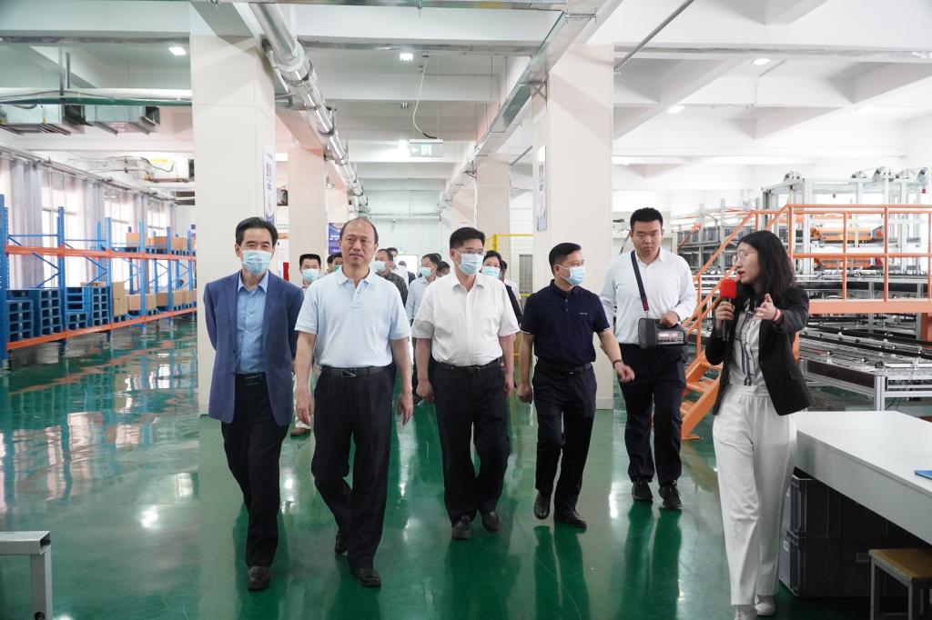 马跃启陪同参观学校实习实训室。(韩承晋供稿)