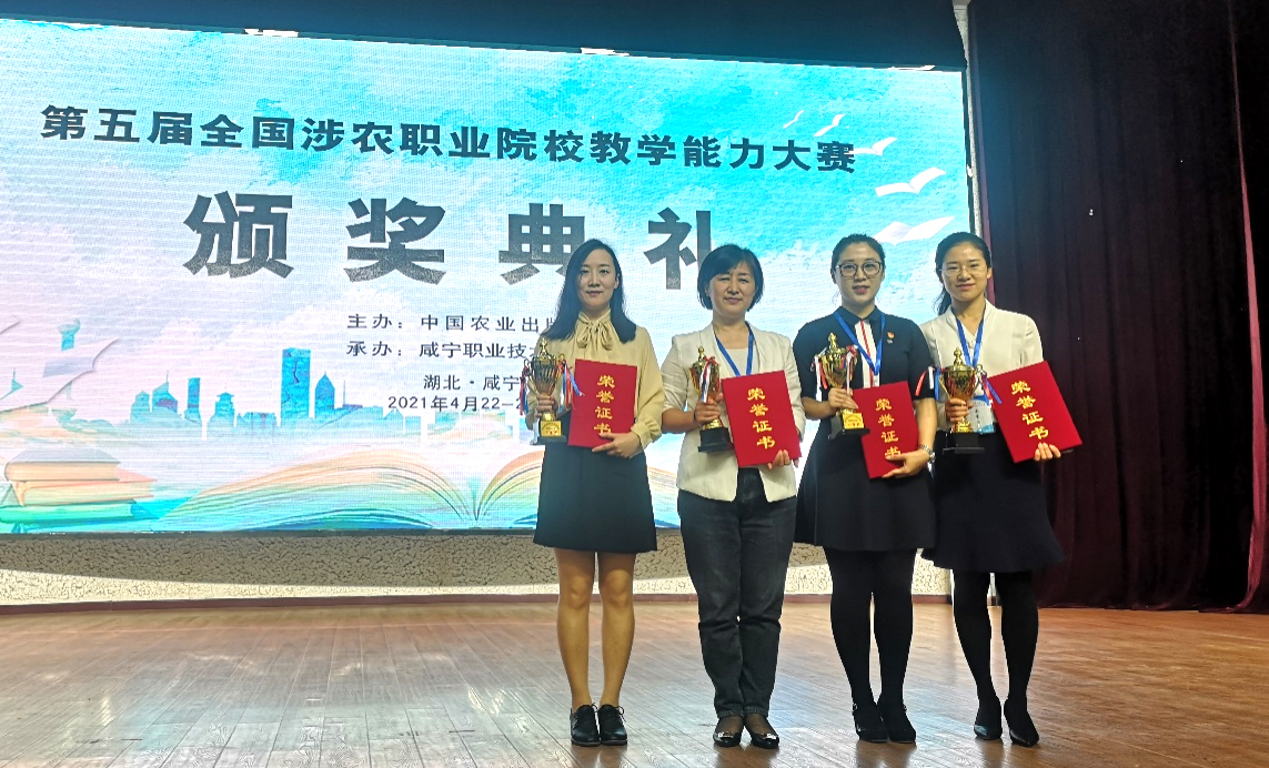 4月22日至24日,由中国职业技术教育学会农村与农业职业教育专业委员会(简称农专委)与中国农业出版社共同举办,咸宁职业技术学院协办的第五届全国农业职业院校教学能力大赛决赛在湖北咸宁落下帷幕。代表我校参赛的安敏团队、李翠翠团队分别获一等奖,韩丹团队、李鹏团队分别获二等奖。
