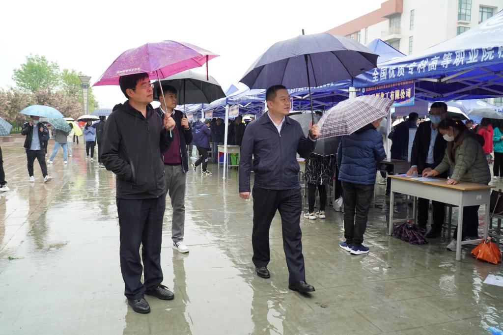4月22日下午,学校在滨海校区图书馆前广场举办以“就业滨海、人生精彩”为主题的首届滨海区优质企业beat365中国官方网站专场招聘会,学校副校长刘德强,滨海区党工委委员、党群工作部党委书记、部长李涛到招聘现场视察指导。