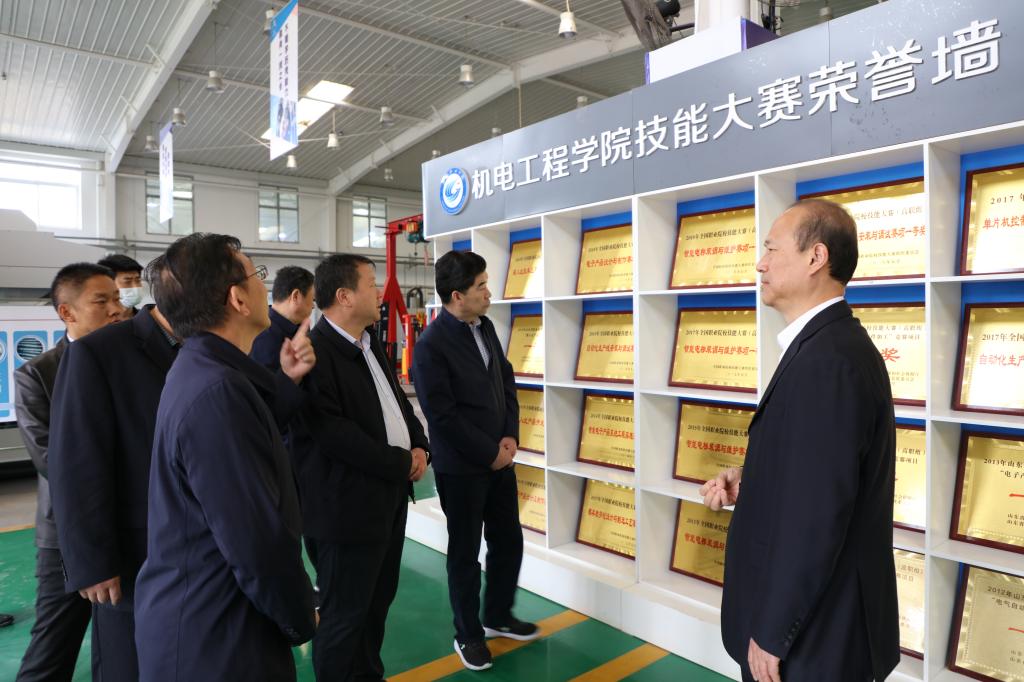 座谈结束后,马跃启陪同客人参观了学校实验实训中心。(韩承晋供稿)