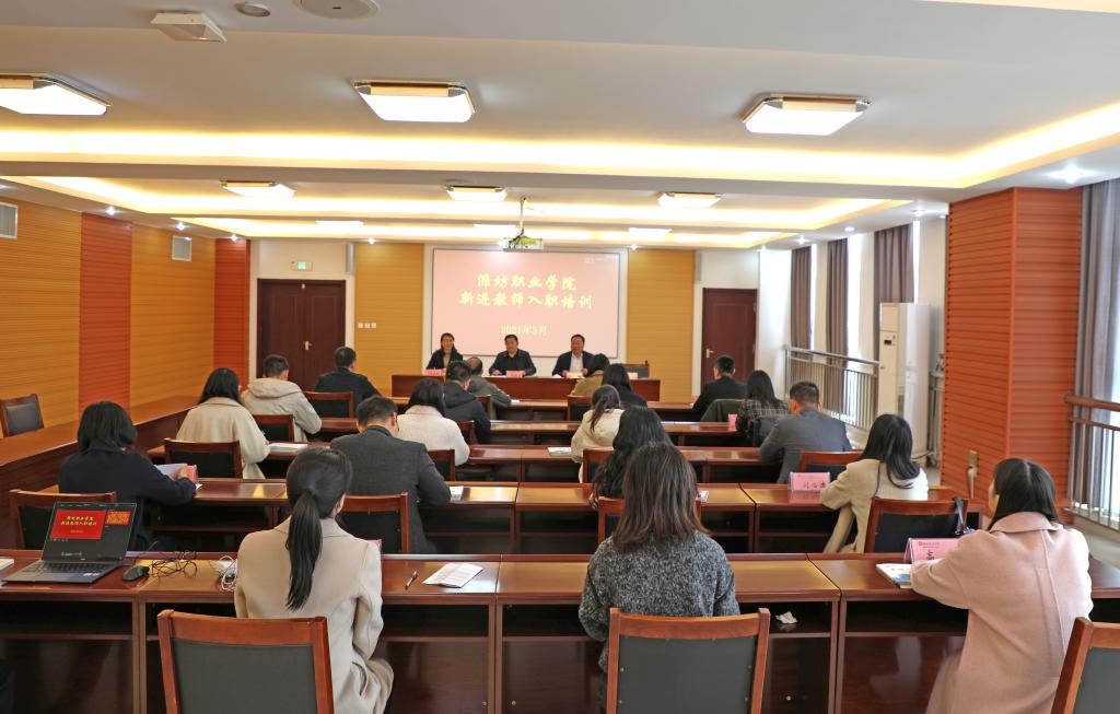 学校党委副书记宋桂言讲话。他对新进教师表示欢迎和祝贺,为新进教师介绍了学校历史沿革、发展现状和取得的成绩。他结合自身从教经历,围绕“培养什么人、怎样培养人、为谁培养人”这一根本问题,阐述了教育的意义、高校培养目标及教师教书育人的责任和使命。他对新进教师提出三点希望,一要坚持思想铸魂,用习近平新时代中国特色社会主义思想武装头脑,坚持价值导向,带头践行社会主义核心价值观;二要坚持党建引领,充分发挥教师的示范引领作用,德高为师,身正为范,以高尚的人格魅力赢得学生敬仰;三要坚持“三全育人”,勇担时代责任和历史使命,传承“崇实尚行 敢于争先”的潍职精神,努力做有理想信念、有道德情操、有扎实学识、有仁爱之心的好老师,做学生锤炼品格、学习知识、创新思维、奉献祖国的引路人。