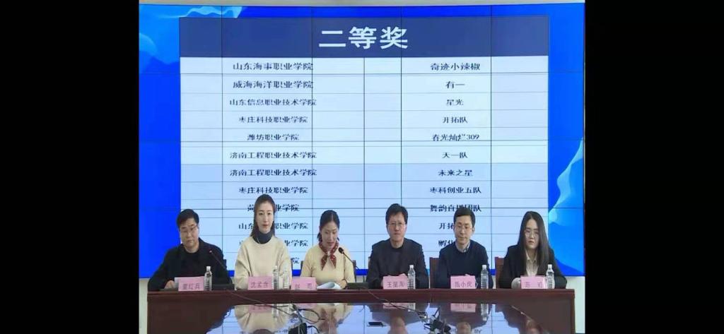1月12日,“京天看你的”山东省首届大学生网络达人直播带货大赛颁奖典在威海海洋职业学院落下帷幕,我校祝国毓等同学的“春光灿烂309”团队荣获银奖,于佳等同学的“跳跳鱼”团队和白雯茹等同学的“王牌归属队”分别荣获铜奖,王光宇等同学的“新星小战队”荣获优秀奖。