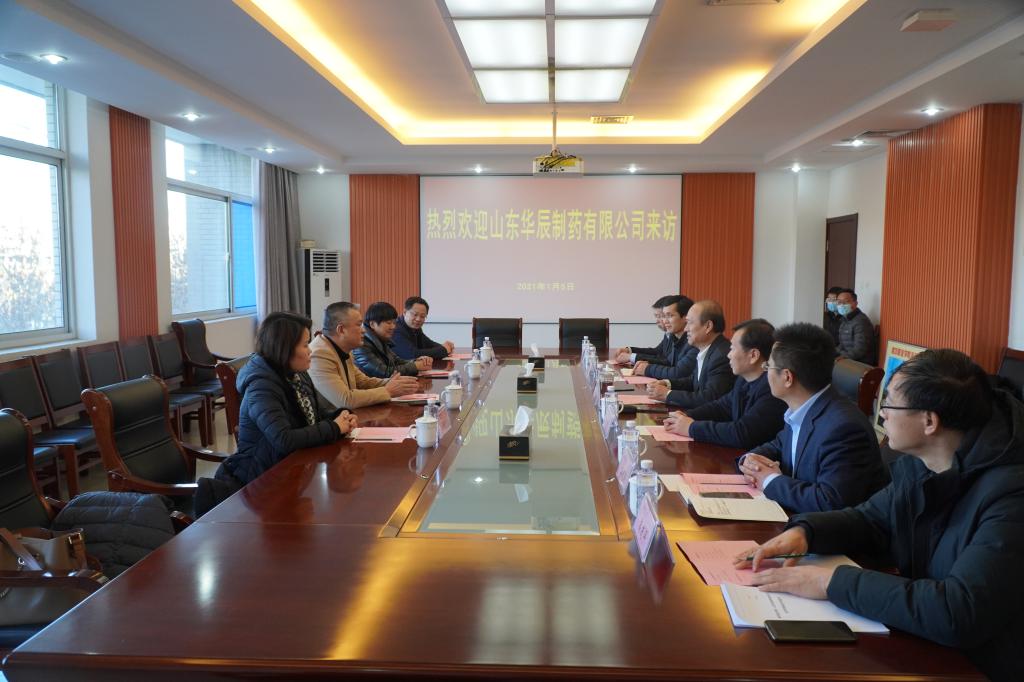 马跃启介绍了学校的建设规划、办学历史、学生技能大赛及创新创业大赛获奖、近年招生及就业情况,学校因育人质量高、社会服务好、校企合作深广受企业和行业好评,社会美誉度逐年提升。同时指出,下一步学校将继续坚持面向市场、服务发展、促进就业的办学方向,为行业企业及区域经济发展培养更多高素质技术技能人才。随后化学工程学院负责人介绍了化工学院专业设置、师资队伍建设、产学合作及育人成果等。姜正军介绍了华辰制药有限公司发展历史、业务板块和布局、发展规模和优势,期望校企双方深度合作,为企业发展提供高端技术技能人才,实现互利共赢。