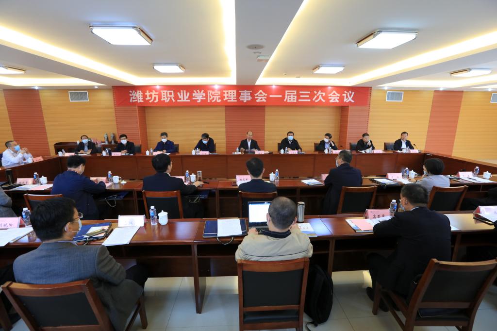 马跃启致辞,他代表学院党委向各理事会单位和各位理事对学院事业发展的关心、支持表示感谢。他表示,beat365中国官方网站理事会在推进学院冲刺全国优质校和国家“双高计划”立项等关键时刻,在促进学院深化产教融合、校企合作,扩大国际交流与合作,提高办学水平及人才培养质量等各方面发挥了重要作用。他指出,职业教育正迈入创新发展、高质量发展的新阶段,国家扶优扶强引领职教改革发展导向越来越鲜明,职业院校生存、发展竞争更加激烈。下一步,要从三个方面做好学院理事会工作。一是进一步完善好理事会制度及工作机制,充分发挥理事会在促进学院治理体系和治理能力现代化中的重要作用,把理事会逐步建设成为学院现代大学治理体系的重要支撑,主动适应职业教育办学体制改革及办学多元化要求。二是进一步发挥好理事会智囊及联系优势,密切学院与上级主管部门、理事单位及社会各界的互动联系,充分发挥理事会在编制学院年度计划、中长期发展规划及谋定发展大计方面的智囊作用,不断拓展学院办学视野、办学理念、办学思路,提升办学治校能力。三是进一步发挥好理事会的影响力和吸引力,聚焦学院人才培养和服务贡献能力提升,加大学院理事会及成员参与学院办学成果宣传,加大校企合作人才培养、课题研究及成果推广,增强学院理事会影响力、吸引力,不断壮大学院理事会队伍,为提升学院办学实力和社会声誉提供重要支撑。他希望,全体理事单位及成员共同努力,推动学院理事会更好发挥作用,以卓有成效的工作和优异的成绩,迎接新挑战,实现新跨越,推动学院高质量发展,为潍坊现代化高品质城市建设和经济社会发展做出更大的贡献!