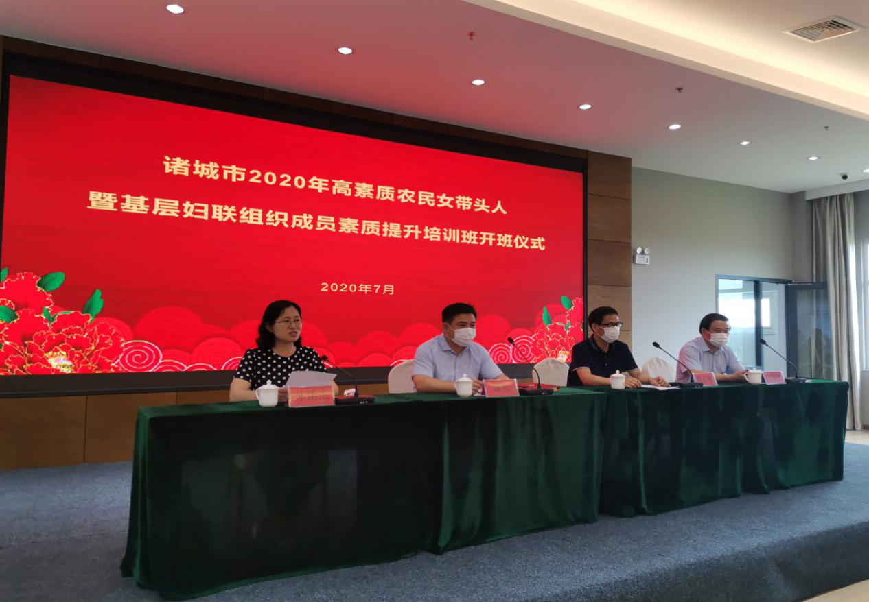 7月15日上午,潍坊职业农民学院2020年高素质农民女带头人第一期培训班在潍坊职业农民学院诸城分院开班。开班仪式由诸城市妇女联合会主席孙铭杰主持,诸城市委副书记谭明、诸城市农业农村局副局长王振波、潍坊职业农民学院负责人出席培训班开班仪式。
