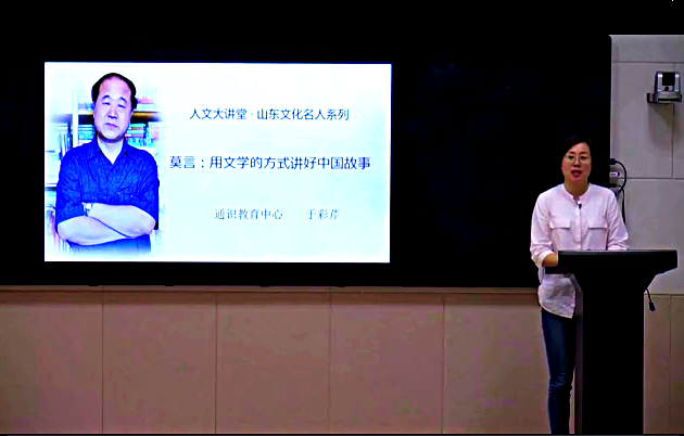 近日学院第52场人文素养大讲堂在钉钉网课开讲,通识教育中心于彩芹老师作了题为“莫言:用文学的方式讲好中国故事”的线上讲座,全院近1万人收看了讲座。