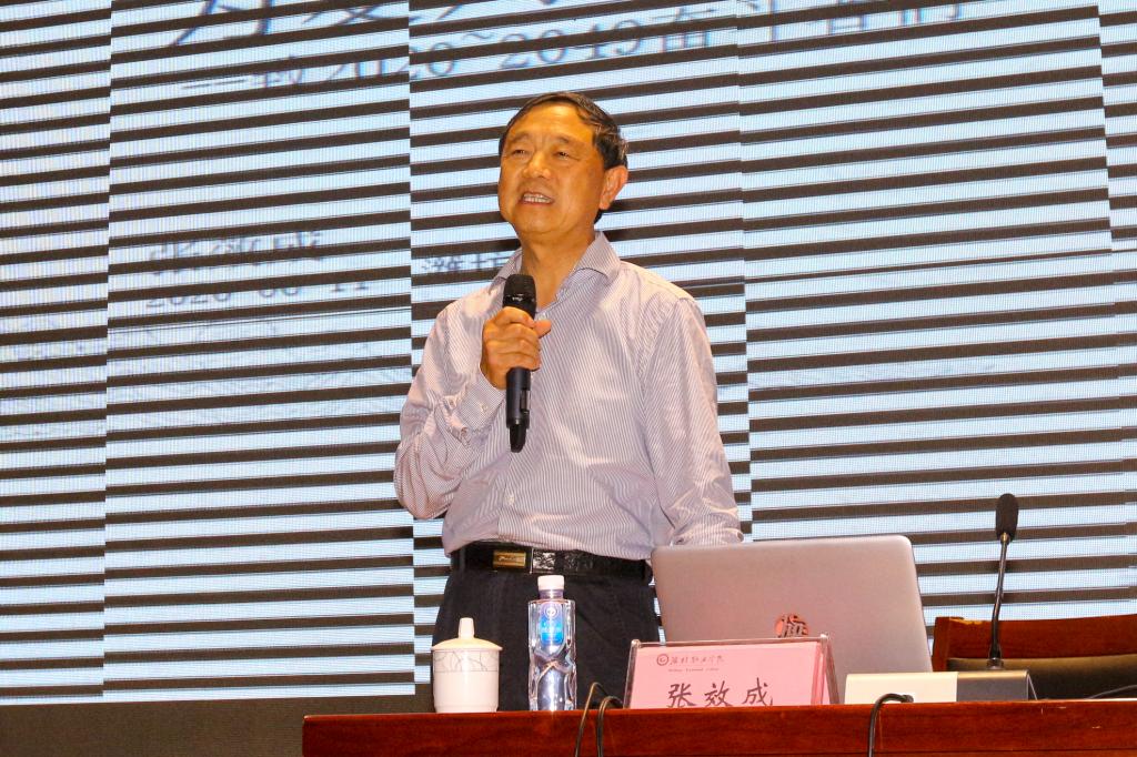 张效成现任青岛蔚蓝生物股份有限公司董事,青岛康地恩实业有限公司董事长。他的报告围绕改革开放以来经济社会的快速变迁和巨大变化,结合个人拼搏奋斗的职场经历和深刻的人生感悟,从“沐浴在中华民族文明精神的阳光之下,过去是史、未来是梦、当下是真,‘和’‘善’文化的人生解读”三个方面,为同学们作了精彩报告,报告引经据典、旁征博引、深入浅出地通过自己的人生经历为同学们阐释了企业“和、善、干、学”的理念和企业文化。整场报告充满了就业创业的智慧和人生成长的宝贵经验,富含发人深思的人生哲理,折射出博大璀璨的传统文化光辉,展现了当代企业家的民族担当和家国胸怀,令与会人员意味隽永、受益匪浅。张效成告诫并号召同学们一定珍惜当下国家的好政策、好环境,用勤奋、热情、承担三种优秀品质,刻苦磨练自己,不忘初心,奋斗不息,为实现中华民族伟大复兴的中国梦而奋斗。