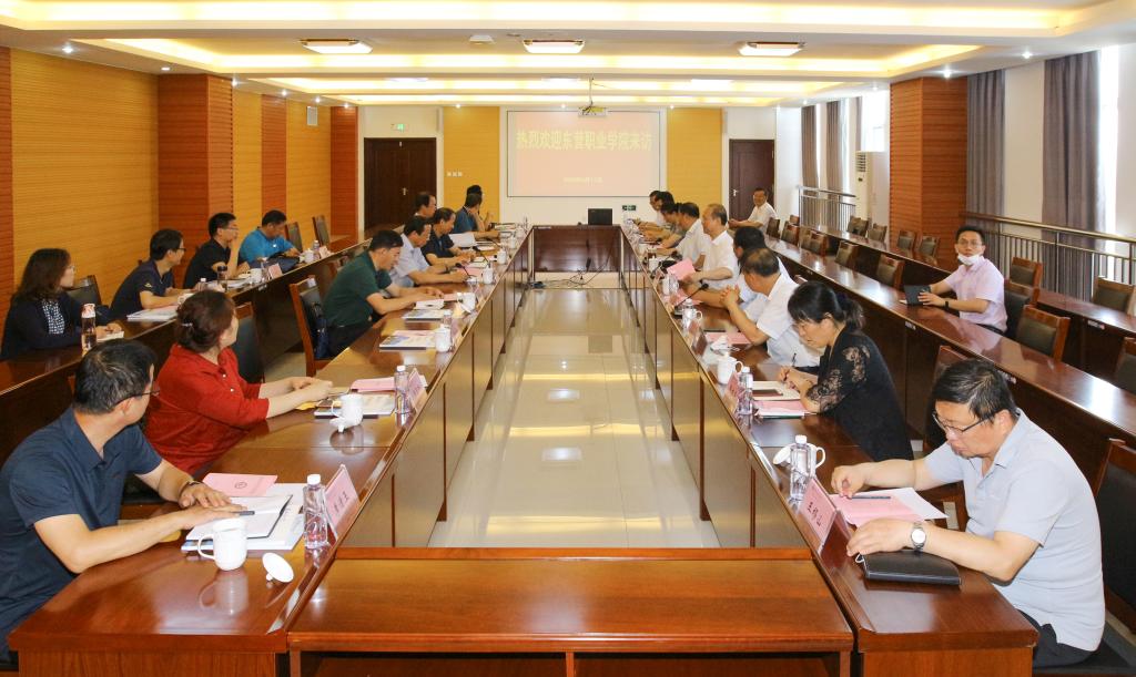 6月11日上午,东营职业学院院长李延成一行12人来beat365考察交流,学院党委书记马跃启、院长王家爱、党委副书记宋桂言、纪委书记郭晓辉会见了客人,组织人事处、团委学生工作处、教务处、科技处、通识教育中心相关负责同志参加座谈。