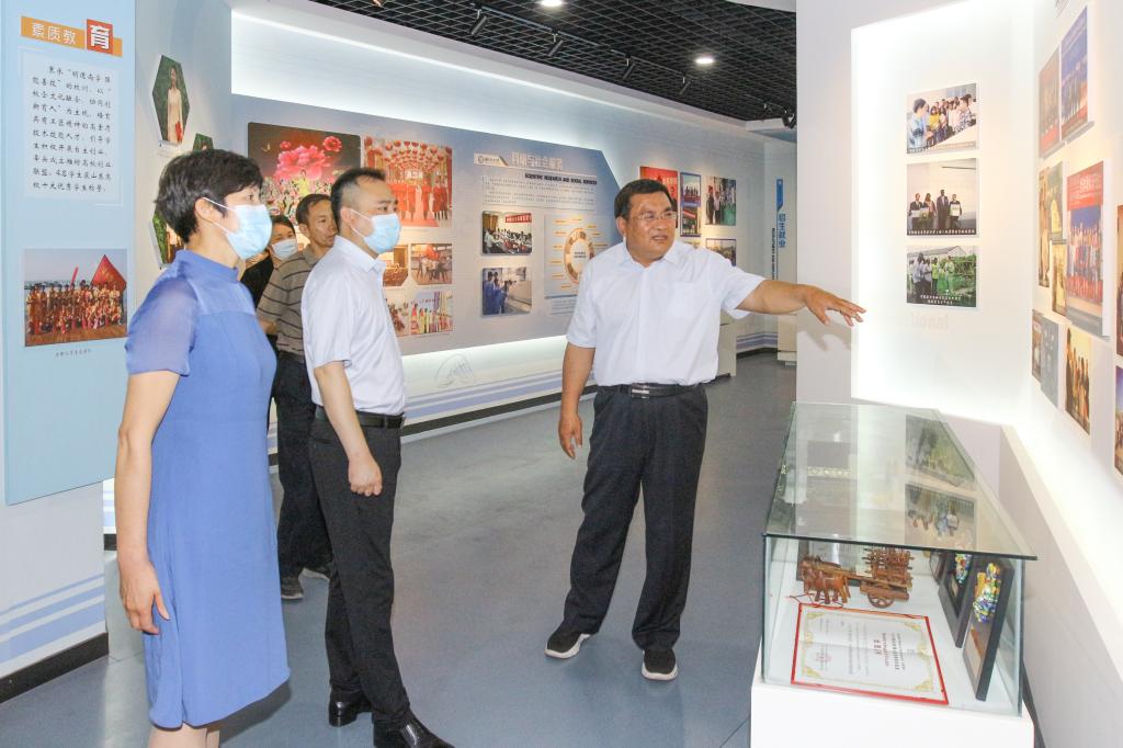 座谈交流前,田道敏一行参观了学院校史馆、图书馆及实习实训场地。(王宗元供稿)