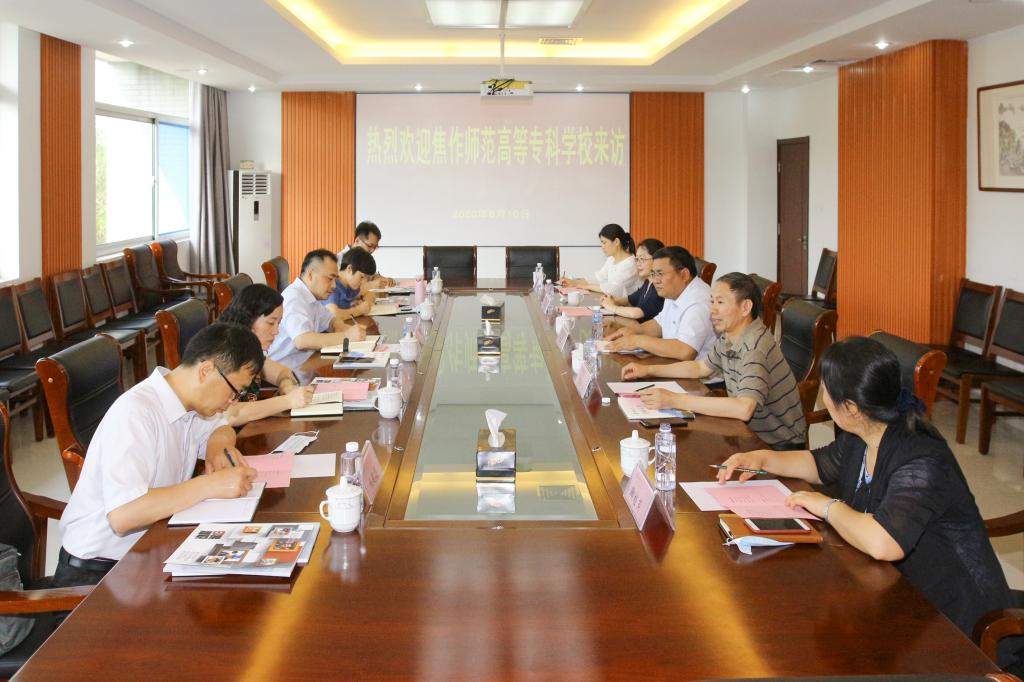 6月10日下午,焦作师范高等专科学校校长、党委副书记田道敏一行5人来beat365考察交流。学院院长王家爱、副院长李瑞昌在滨海校区会见客人,宣传部、教务处、科技处主要负责同志和相关负责人参加活动。