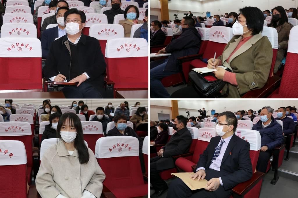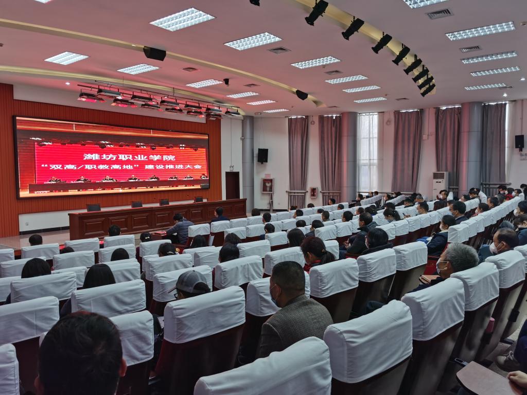 4月9日,学院在滨海校区图书馆报告厅召开“双高/职教高地”建设推进大会,学院领导马跃启、王家爱、宋桂言、赵君堂、贺志强、李瑞昌、郭晓辉、刘德强出席会议并在主席台就坐,全体教职工参加会议。会议在滨海校区清泽楼报告厅、奎文校区报告厅设分会场。