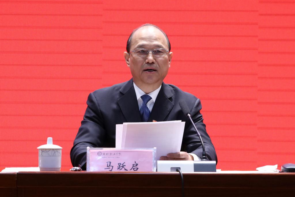 党委书记马跃启作题为《响应总攻冲锋号,打响重点攻坚战,奋力推进学院高质量发展》的讲话。他指出,在全院师生的努力下,学院各项事业取得长足发展,迎来了难得的发展机遇。“双高”和“职教高地”建设是学院今后几年工作的重中之重,是推进高质量发展的总抓手。广大党员干部及全体师生要立即行动起来,全面贯彻省市“重点工作攻坚年”工作要求,响应总攻冲锋令、打好重点攻坚战,推动学院“双高”和“职教高地”建设全面起势。