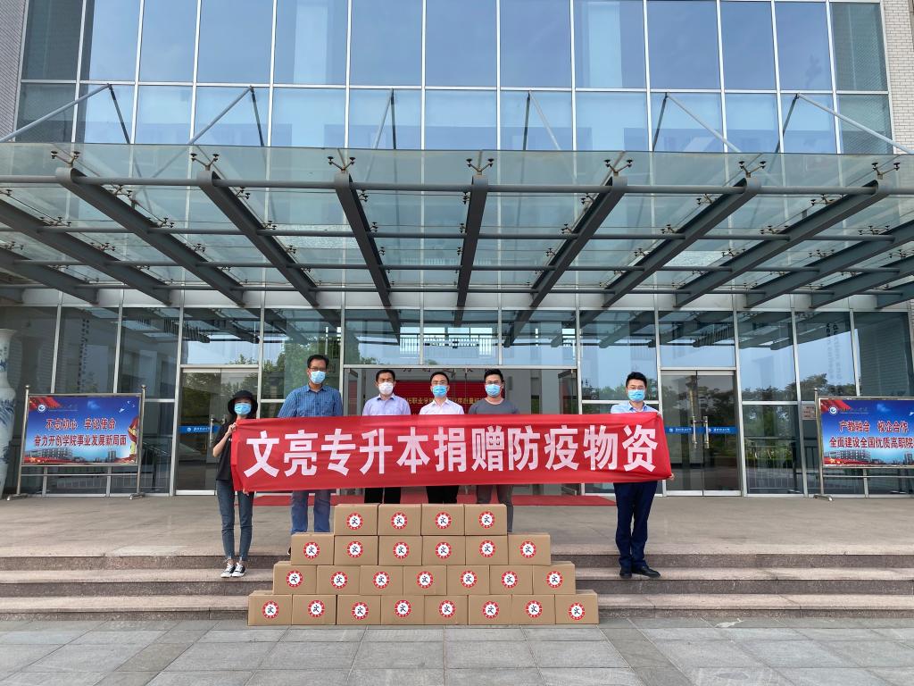 5月25日下午,济南文亮教育培训学校为beat365捐赠外科口罩3000片、便携式酒精消毒喷雾800瓶等爱心物资,后勤服务处负责同志出席了捐赠仪式。