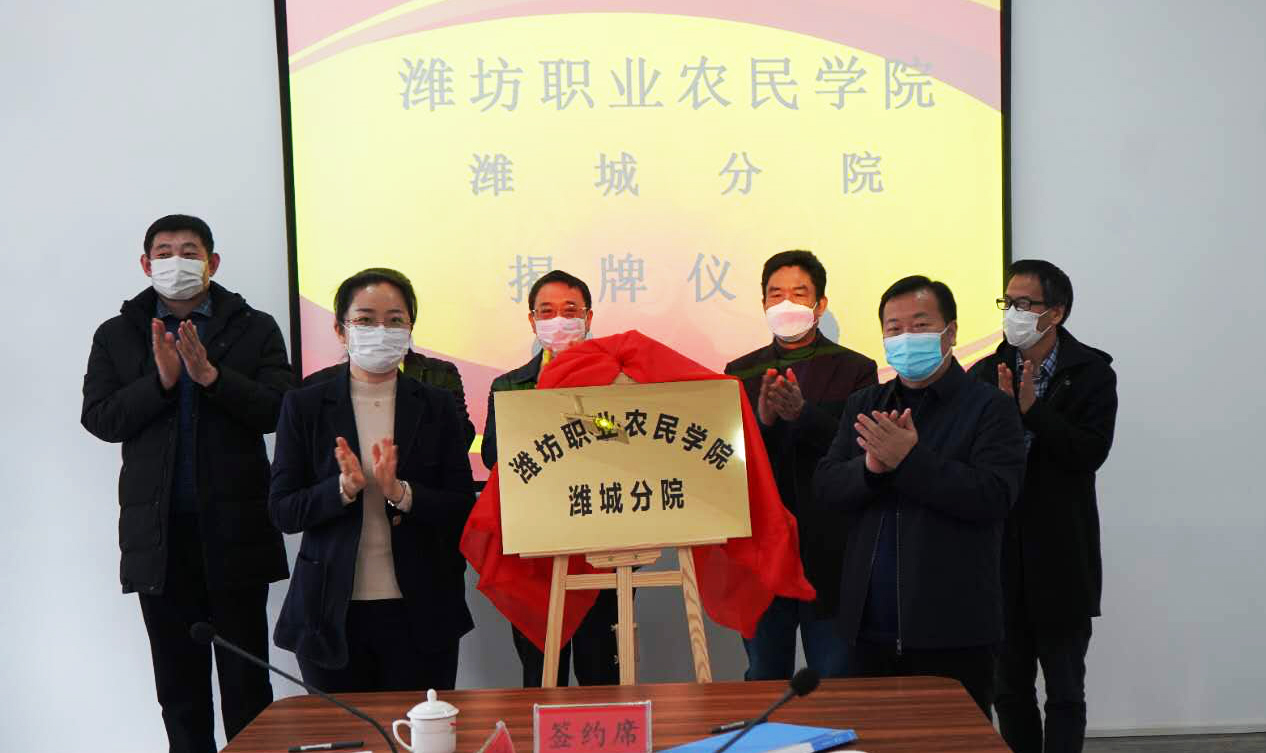 3月31日,潍坊职业农民学院潍城分院揭牌仪式在beat365中国官方网站培训基地(潍城)举行,学院副院长贺志强与潍城区副区长范昕昕共同为分院揭牌。继续教育学院负责同志和潍城区农业局局长杨在民共同签署科技合作协议,合作共建潍坊职业农民学院潍城分院。