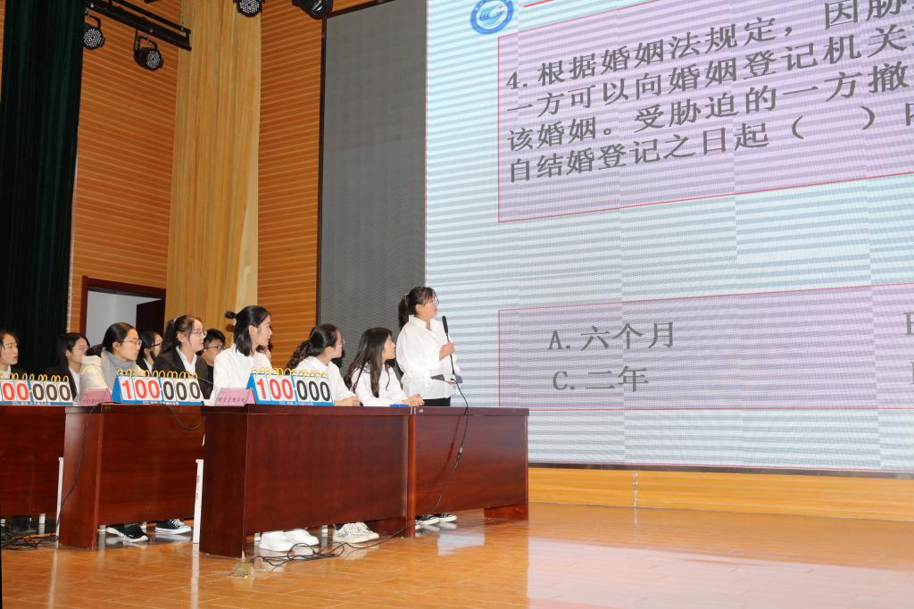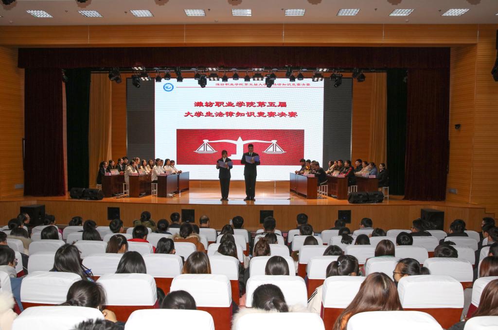 12月5日下午,学院第五届大学生法律知识竞赛决赛在滨海校区图书馆报告厅举行,为期一个多月的大学生法律知识竞赛落下帷幕。学院党委书记马跃启,办公室(统战部)、思政部负责同志,思政课教师代表,二级学院学生代表共400余人观看了比赛。