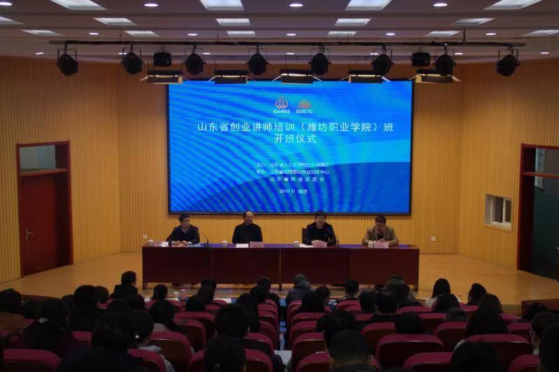 11月27日,学院大学生创业就业师资培训班在奎文校区大学生互联网+创业中心报告厅举行开班仪式,学院副院长刘德强、山东省就业促进会副会长张善利、山东省就业训练中心科长刘伟,学院招生就业处(创业教育学院)负责同志和培训班学员出席会议。