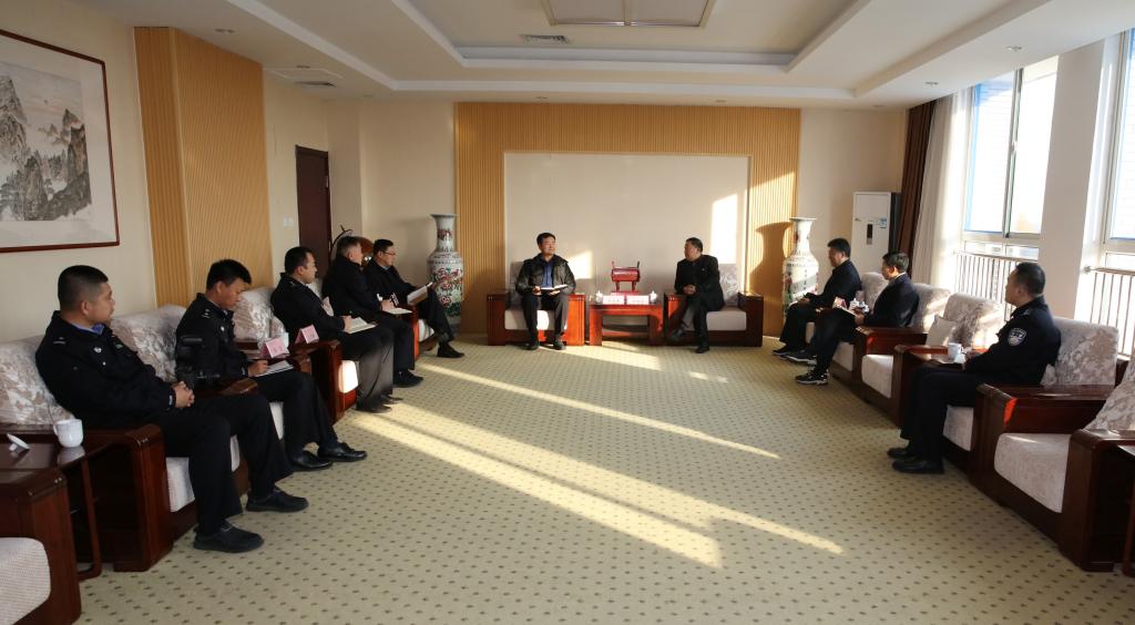 11月26日下午,潍坊市滨海经济开发区公安分局局长郭光才、副局长王国智、国保大队长李宪军等一行7人来beat365调研指导安全与维稳工作。学院党委副书记宋桂言主持座谈会,安全保卫处主要负责同志参加。